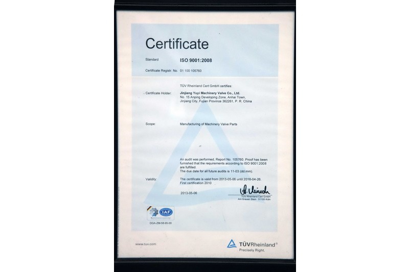 晉江煜億機(jī)械閥門有限公司,成立于1997,是一家外商獨(dú)資企業(yè),位于福建省有名的旅游城市泉州市的安海鎮(zhèn)裝備制造產(chǎn)業(yè)基地。公司建筑面積近36000平方米,擁有員工200余人,其中技術(shù)人員和管理人員20余人。公司組成包括精密鑄造車間、砂型鑄造車間、機(jī)加車間。我們從2001年起就獲得了TUV認(rèn)證機(jī)構(gòu)頒發(fā)的ISO9001的證書,從2007年起就持續(xù)獲得TUV認(rèn)證機(jī)構(gòu)頒發(fā)的PED證書。我們公司的產(chǎn)品遠(yuǎn)銷十幾個(gè)國(guó)家地區(qū),如美國(guó)、丹麥、德國(guó)、荷蘭、澳大利亞、中國(guó)(臺(tái)灣)、南洋。